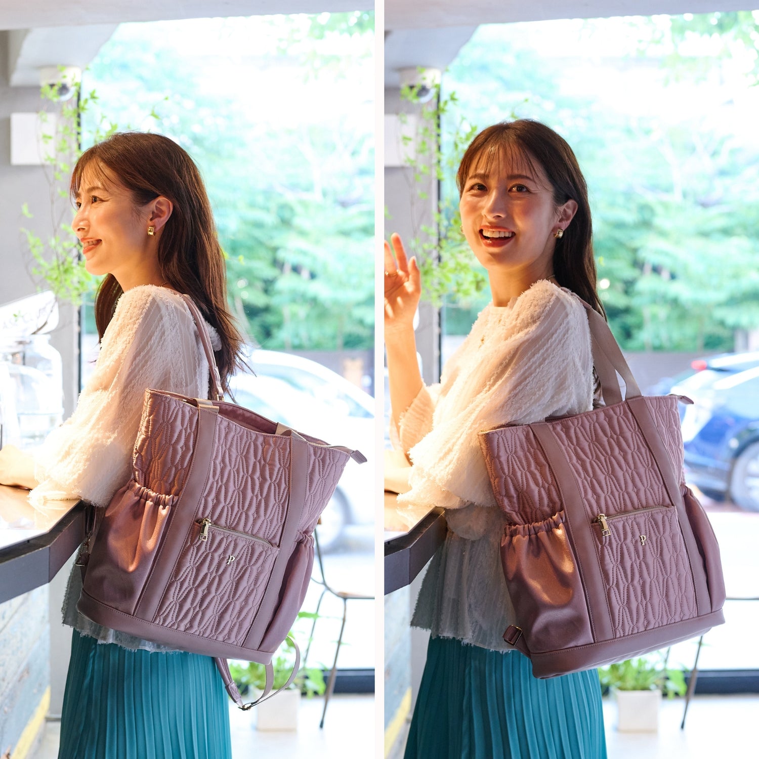 PIPOCCHI キルティングマグリア | パンプスでもスキップしたくなる2wayトートリュック | 15ポケット&垂直収納力&軽量