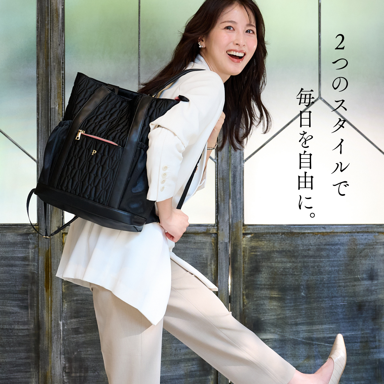 PIPOCCHI キルティングマグリア | パンプスでもスキップしたくなる2wayトートリュック | 15ポケット&垂直収納力&軽量